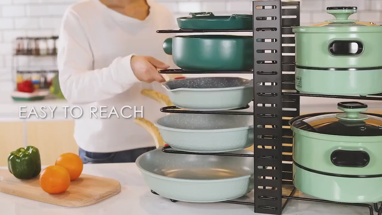 Upgrade your kitchen organization with this 8-Level Heavy-Duty Pot & Lid Storage Rack, designed to keep cookware neat, accessible, and space-efficient. Built from durable iron with a rust-resistant finish, this rack is perfect for home kitchens, restaurants, cafés, and commercial cooking spaces.